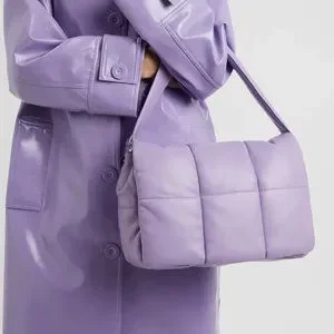 Brand new!!! Oversized, Vegan Leather, puffed style. Detachable padded top handle, quilted, magnetic press-stud fastening at sides, silver-tone hardware. internal zip-fastening pocket, fully lined. 18.25"W x 12.5"H.