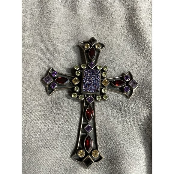 Nicky Butler 925 Sterling Silver Druzy Peridot Garnet Citrine Cross Pendant NO CHAIN NO BOX