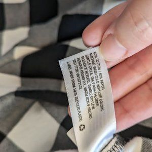 Universal Thread black and white plaid shirt. The plaid is a buffalo plaid. It has buttons down the front and buttons at the sleeves. The shirt is a flannel, so it's super cozy. There is a pocket on the left breast. Size XXL