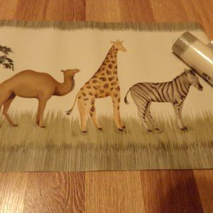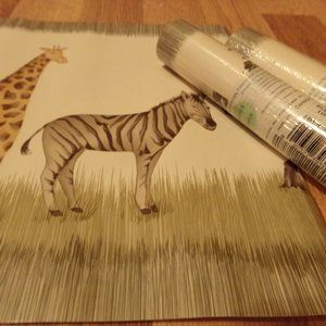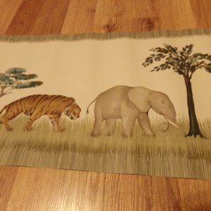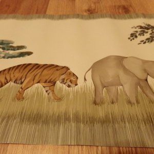 African Safari Animals Tiger Elephant Giraffe Green Grass Cream Wallpaper Border
