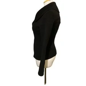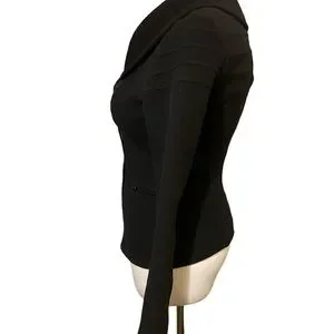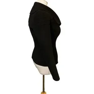 Gorgeous asymmetrical zip front wool, angora, and cashmere jacket. Zip detail at sleeves, 2 zip front pockets. Made by hand. 16.25” chest, 24” long
