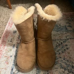 Short chestnut Ugg boots with back tie tassels. Good used condition with slight wear.