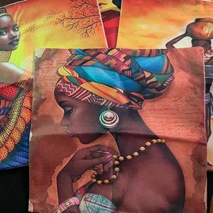Africa themed Pillow covers, 18 x 18, 70% linen, vibrant colors, set of 4