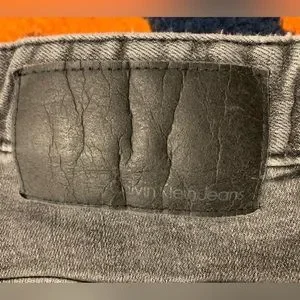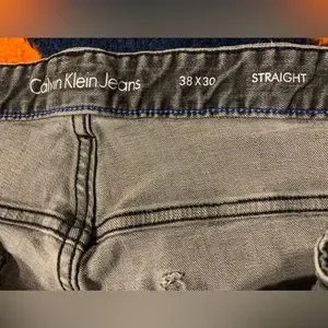 Elevate your wardrobe with these stylish Kalvin Klein vintage jeans. The gray denim fabric is complemented by classic accents like a button and zipper closure, while the straight leg fit and regular size make them a versatile addition to any outfit. The waist measures 38 inches, with an inseam of 30 inches, and the fabric is made of comfortable cotton with medium wash.