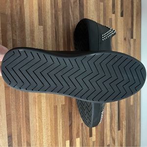 Silver studded details on toe cap and at heel