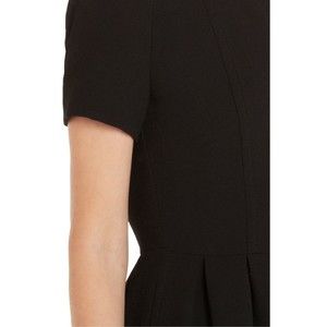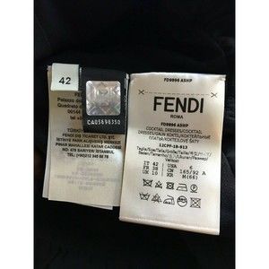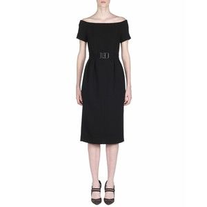 FENDI Roma Black Off Shoulder Crepe Wool Pleated Waist Midi LBD Dress 42 6US NEW