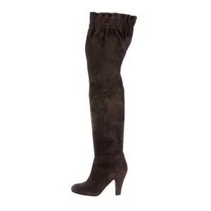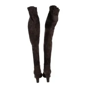 DOLCE & GABBANA suede over the knee THIGH BOOTS chocolate brown 37 6.5 scrunch