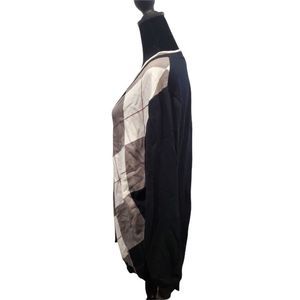 Argyle pattern on front. V-neckline with roll detail. Long sleeves.