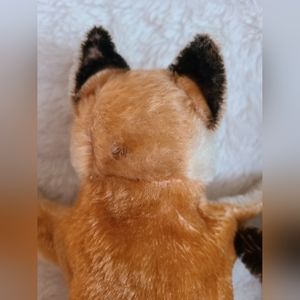 Steiff Vintage Fox has glass eyes, and he is made of orange-red and white mohair with embroidered nose and claws.