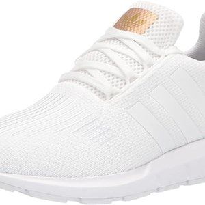 Upgrade your running game with these adidas Swift Run sneakers. The low top shoe shaft style and white knit upper material provide a comfortable and stylish fit. The rubber outsole material offers traction for running and jogging, while the foam insole material gives added comfort. These sneakers come in a size 10 and feature a copper metallic accent for a unique touch. The adidas Swift Run model is perfect for athletic activities, including running and jogging. These shoes are a must-have for any woman looking to improve her athletic performance.
