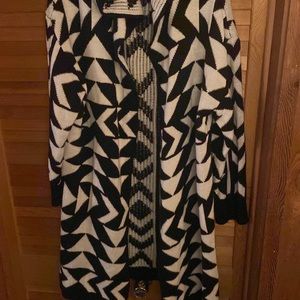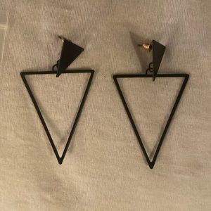 Only Worn once. Plus size 3xl but fits like a 2xl. Probably would fit a size 16 or 18. I am selling the earrings that go along with it. Black triangle pierced dangle earrings. Sweater and earrings are both in good condition.