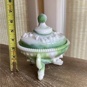 Vintage Westmoreland rare green and white Candy Dish with lid