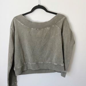 Mono B Gray Off Shoulder Faded Athleisure Sweatshirt Size Medium