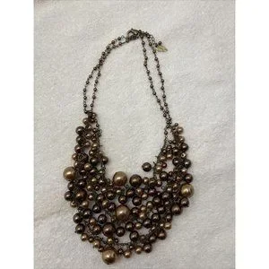 Coldwater Creek Necklace Tiered Layered Brown Bronze Jewelry Costume Fashion 19”