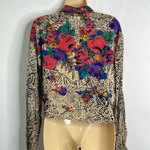 Carole Little petites floral art boho tie front button down long sleeve blouse