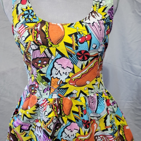 - Folter skater dress in retro 1960s snack attack print in size large. Runs small and more like a small or medium, see measurements.