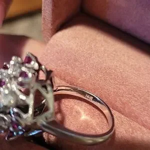 14k vintage diamond ring is ruby, it's a genuine stones. diamonds passed the diamonds test. absolutely stunning clear diamonds. don't know the carat don't know the size or origin. big diamonds on this ring not small at all.