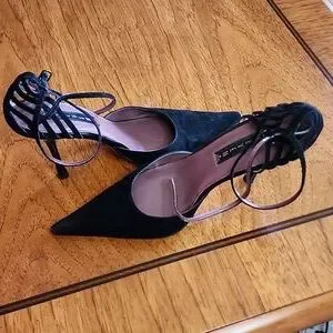 These Steven by Stev Madden shoes are very classy. They're an ankle wrap shoe with buckles. This classic pointed toe shoe will definitely make a statement with any outfit. The heel is 4 inches. If you like to strut, then these shoes are for you.