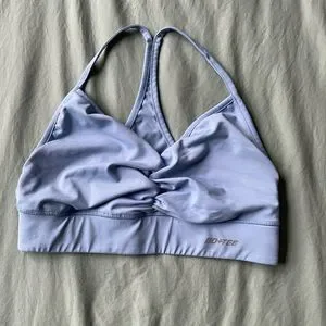Very lightly worn bable blue sports bra with a flattering front sinch