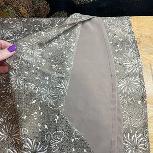 J Jill large Taupe Brown Lightweight Lull On Skirt w/ White Floral Black Accents