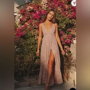 Lulus Stolen Moments Dusty Pink Lace-Up Lace Maxi Dress