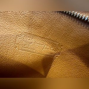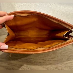MCM Brown Visetos Leather Clutch Bag. Clean inside, orange interior. See photos for any scratches on hardware, zipper pull tarnish. Still in great condition, beautiful vintage piece! Made In Germany. Classic hardware.