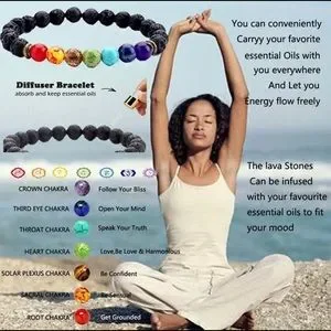 Stay positive and radiant wear your bracelet all day long and benefit from these amazing lava and chakra stones. Drop a little of your favorite essential oil on the lava stones.