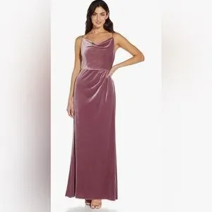 Adrianna Papell Women's Cowl Neck Velvet Gown, Antique Rose