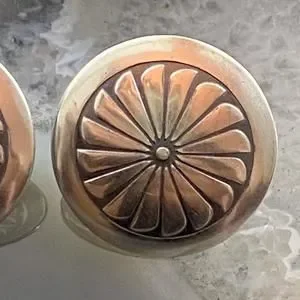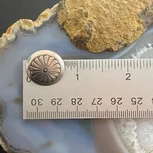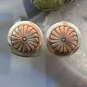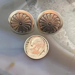 Native American Sterling Silver Round Stamped Concho Floral Stud Earrings For Women.