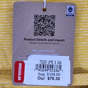New With Tag Patagonia Women's Wear-With-All Dress size Small in Longplains Shine Yellow. The perfect little wrap dress you can do virtually everything in. This flattering skinny strap dress is bright and beautiful. Made out of Fair Trade Certified™ 55% hemp and 45% organic cotton jersey in yellow and white stripes, it wraps around the waist for a flattering and customizable fit.