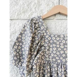 - Description: Made from soft cotton with beautiful blue and white florals, an enchanting puff sleeve, and a flowy hem for a twirl-ready silhouette. Pull on closure.
