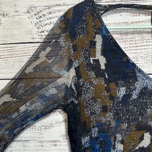For Love & Lemons Navy Print Silk Leather Cuffs Back Tie V Neck Blouse Medium