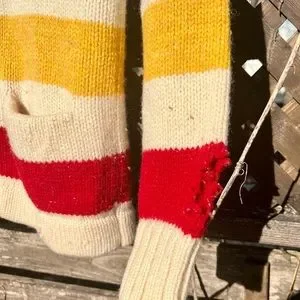 Rare Vintage Polo Ralph Lauren Hudson Bay Knit Button Up Sweater Size Medium. Worn and distressed with holes but so cool. Definite grail!