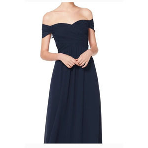 Levkoff NAVY Blue Bridesmaid Full Length Chiffon Dress Style 7071 size 8