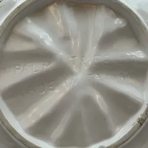 Vintage Palm Tree Company Bunny Carrot Plate Easter Spring Made in Taiwan. 3-D bunny curls against a plate of carrots and carrot tops - Made in Taiwan. Plate is textured and in excellent vintage condition. Please see all photos for condition details. Approximately 8" diameter x 2 1/2" deep. No original box will package with care.