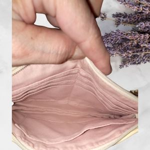 Coach Beige Clutch/ Wristlet, a stylish and practical accessory for the modern woman. With its beige color and signature patent leather trim, this wristlet is sure to catch everyone's attention. Inside, you'll find 8 credit card slots and a convenient slip pocket with a zip closure, keeping your essentials organized and secure. Whether you're running errands or going out for a night on the town, this wristlet is the perfect companion. Upgrade your style and convenience