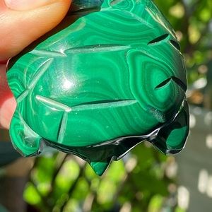 Adorable malachite turtle carving, head is raw sparkly malachite