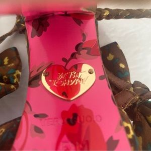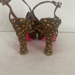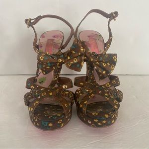 Betsey Johnson Brown Floral Strappy Braided Bow Tie Platform Y2K Heels