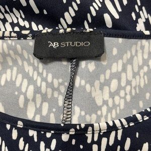 AB Studio • Navy blue blouse chevron dots, size small. 3/4 sleeve.