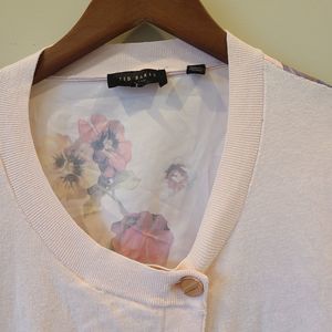 Ted Baker Womens Floral Knit Cardigan Sweater Pink Size 1 Asymmetrical Designer
