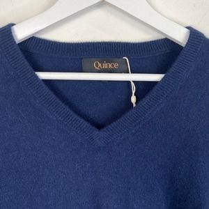 QUINCE Navy Mongolian Cashmere V-Neck Sweater Mens NWT Size Medium