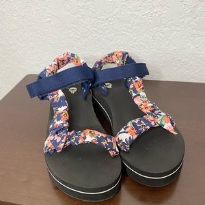 O’rageous Scarf Printed Navy Sport Comfort Walking Velcro Strap Sandals 9