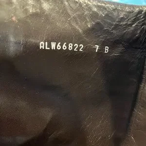 FLAWS: Heel caps show signs of wear. Some leather missing on heels. Signs of normal wear throughout
