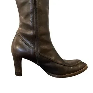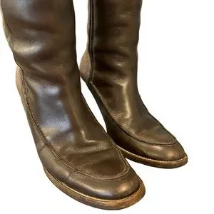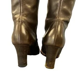 Ralph Lauren Blue Label Italian Leather Heeled Tall Zipper Boots Sz 7 Brown