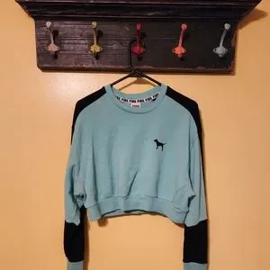 Victoria's Secret PINK women's blue/black crop sweatshirt.