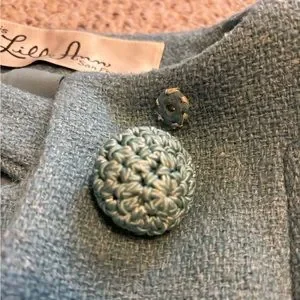 Beautiful detail in the oversized buttons, the scallop at the sleeve and the gusset under the arms True old Hollywood style. Perfect for a spring lunch date , brunch, church event, boys baptism, bar mitzvah, bridal shower etc. e. Except compliments. Wear together or separate. Jacket looks cute with white jeans too. Jackie O style