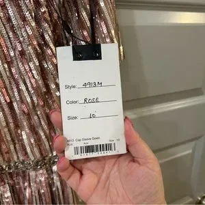 NWT Mac Duggal 4913M Rose Pink Sequin Embellished Gown
