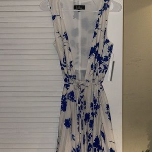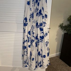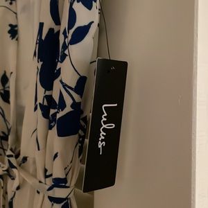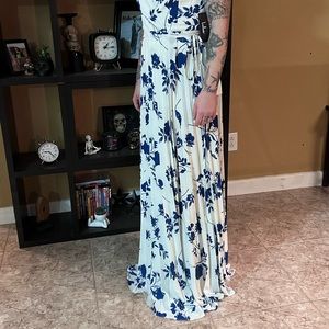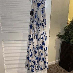 NWT women’s lulus Lindsie Blue and White Floral Print Pleated Wrap Maxi Dress