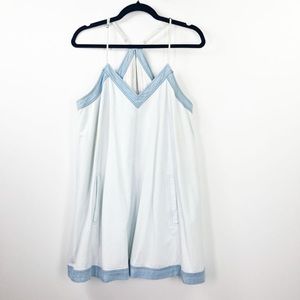 ADDISON Wyton A-Line Racerback V-Neck Light Wash Chambray Dress