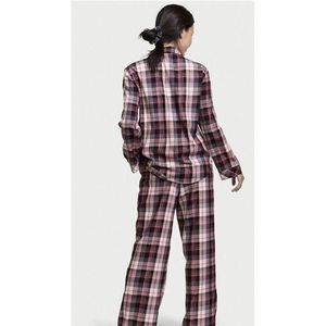 VICTORIA'S SECRET XXL PJ SET sleepwear flannel PINK black gray white PLAID black